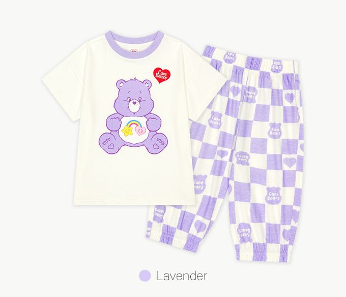 韓國 Care Bears - 聯名款彩虹熊熊短袖上衣X長褲套裝-薰衣草紫