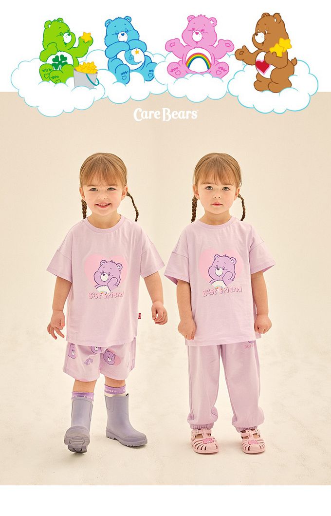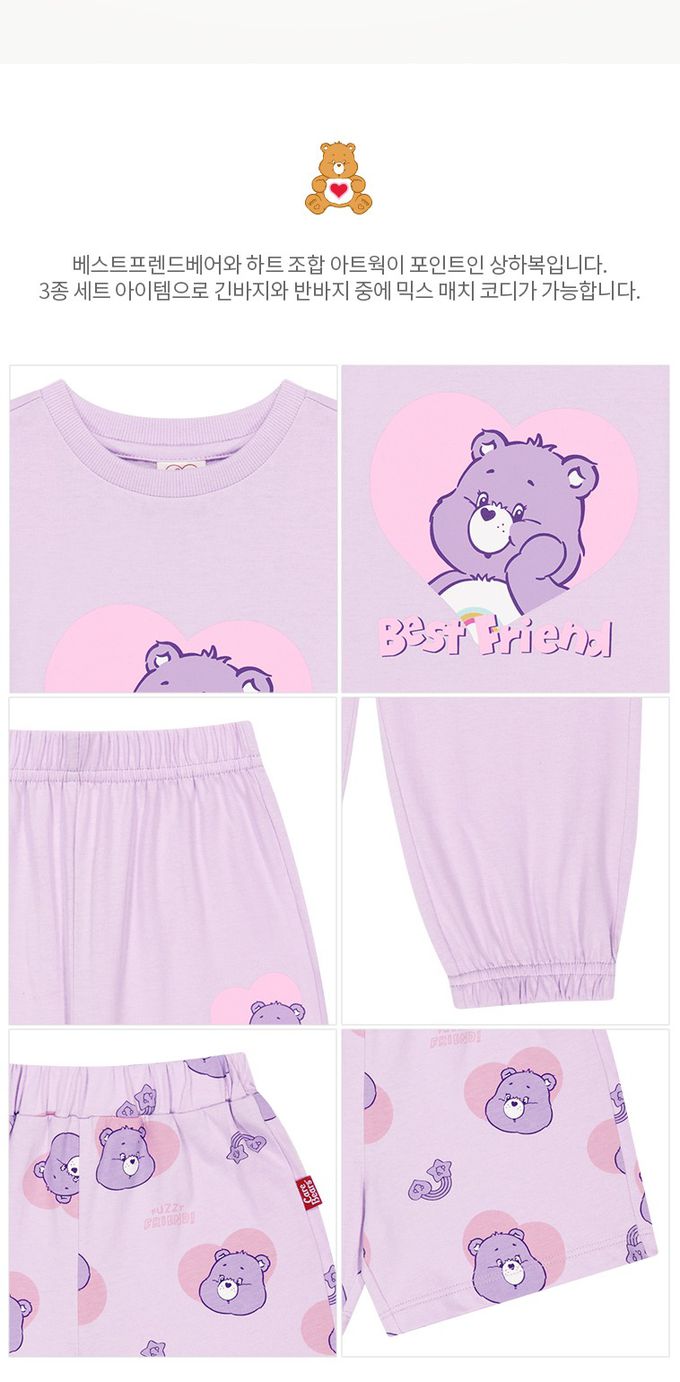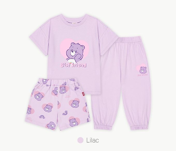 韓國 Care Bears - 聯名款熊愛心短袖上衣X短褲X長褲套裝-薰衣草紫