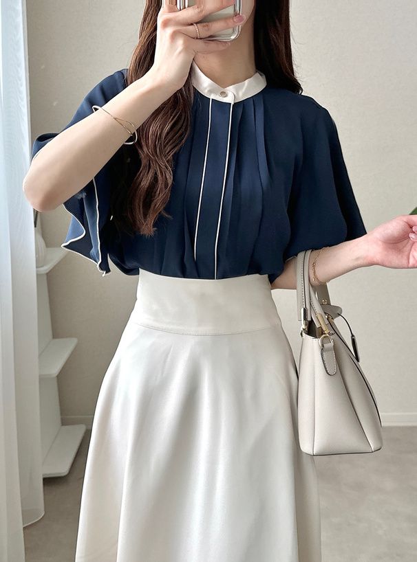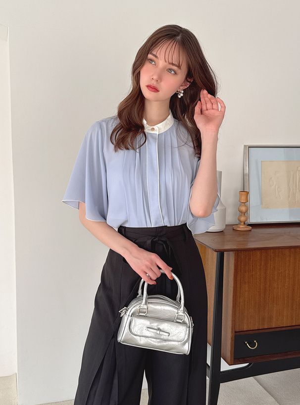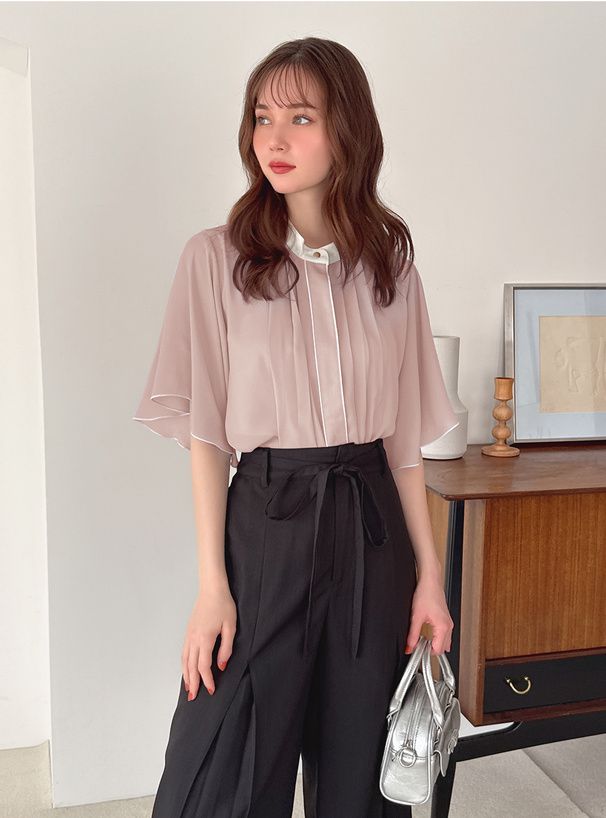 • 品名:甜美皺摺雪紡五分袖襯衫
