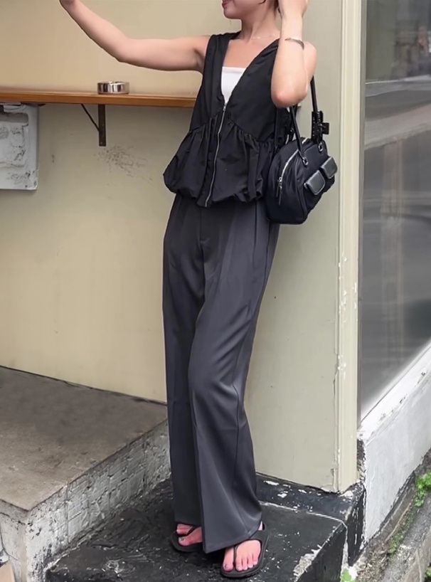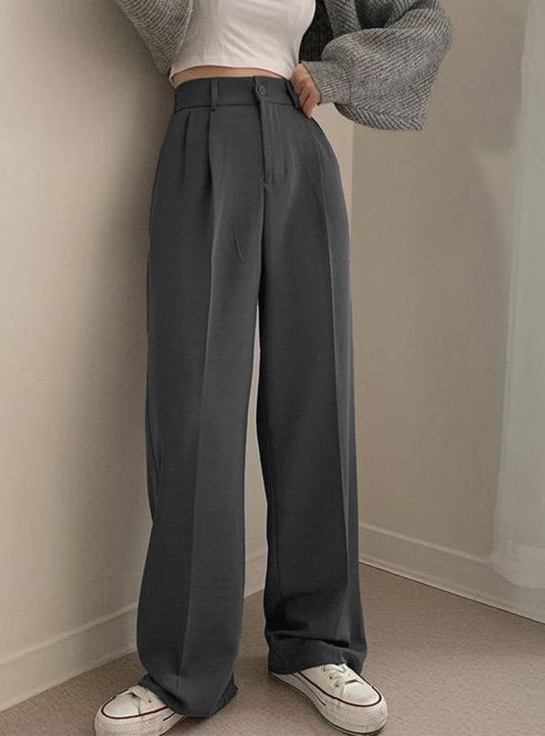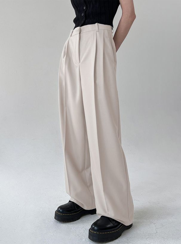 日本 GRL - 時尚感修身打褶西裝寬褲-咖啡