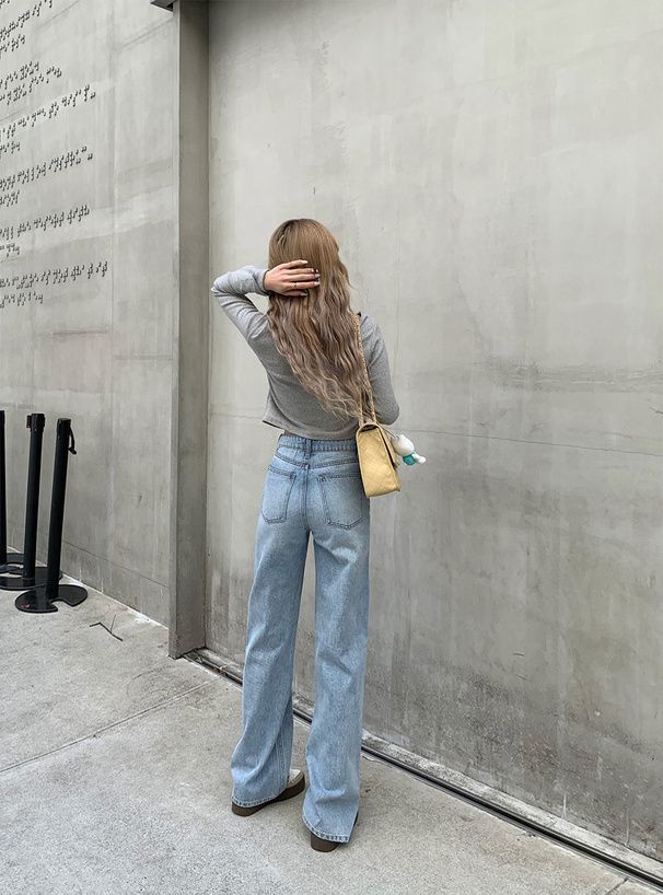 日本 GRL - 顯瘦有型微喇叭牛仔褲-淺藍