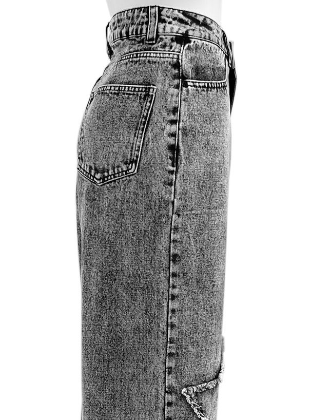 日本 GRL - 復古星星圖案刷色高腰丹寧褲-黑