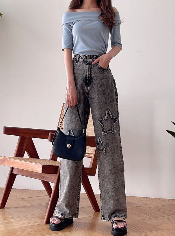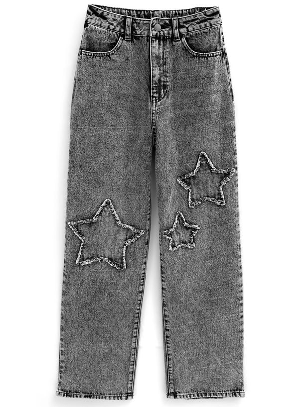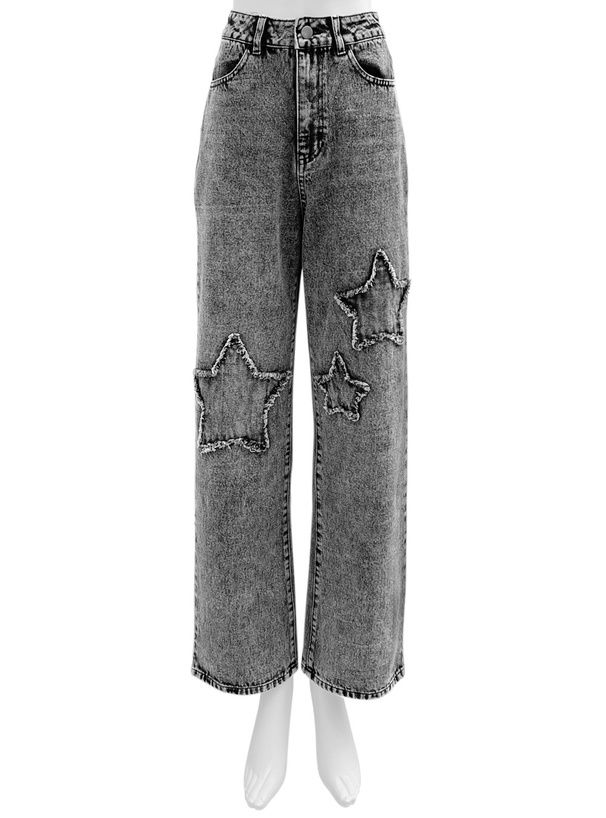 • 品名:復古星星圖案刷色高腰丹寧褲