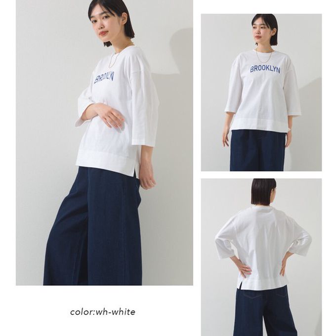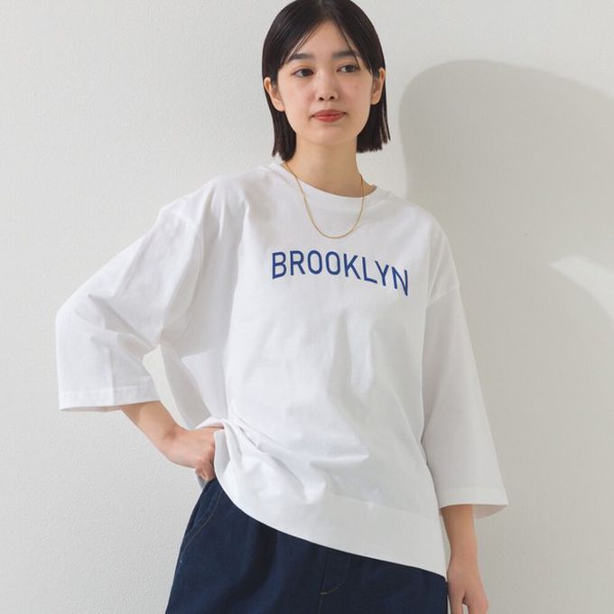 • 品名:簡約整潔英文標語七分袖上衣