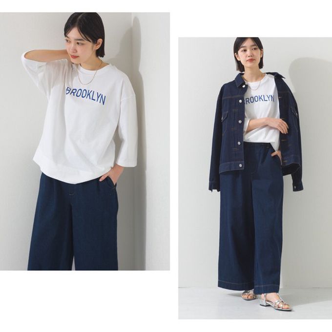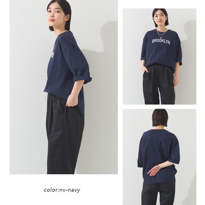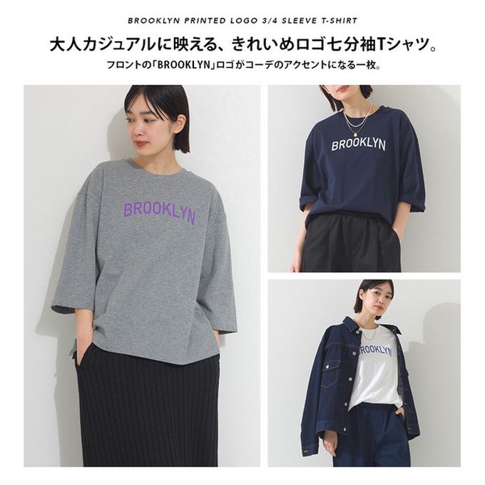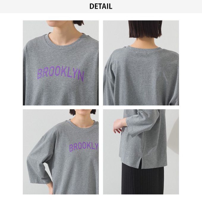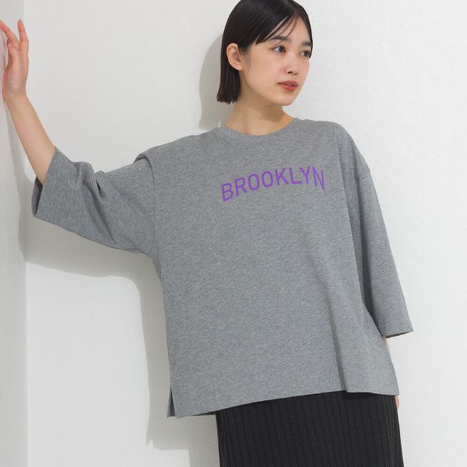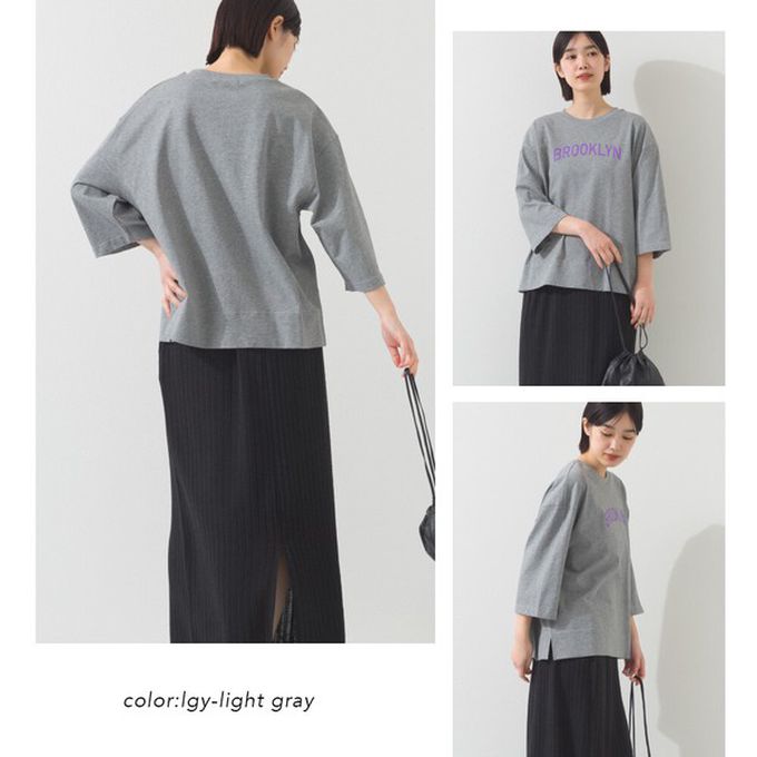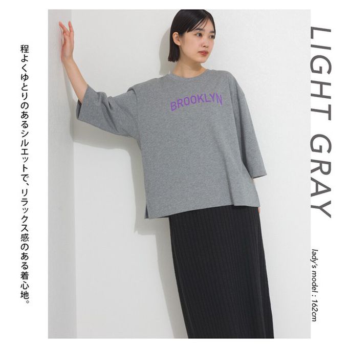 日本 OMNES - 簡約整潔英文標語七分袖上衣-淺灰