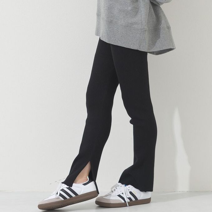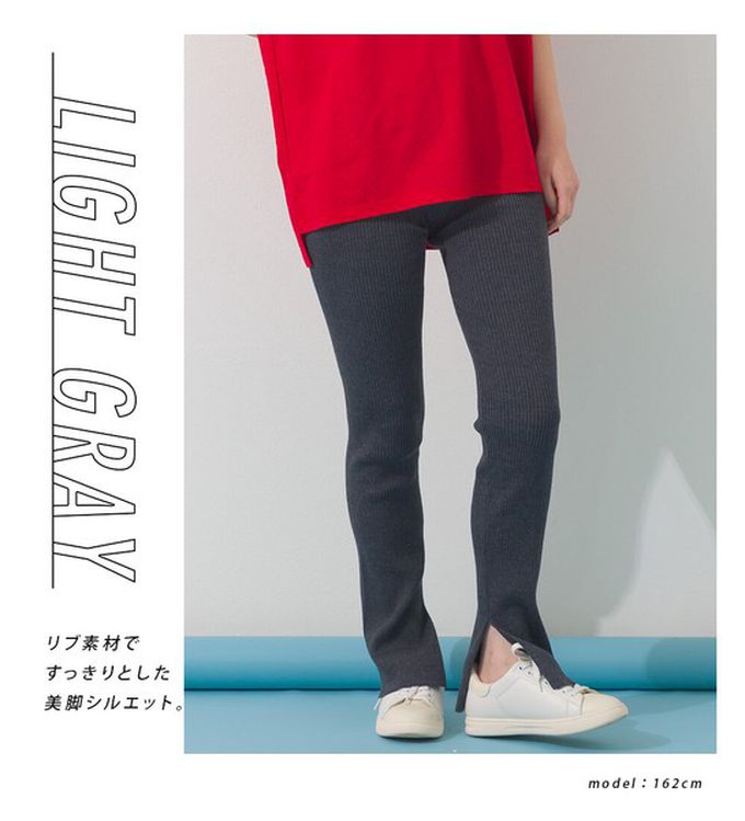 • 品名:美腿羅紋側開叉合身長褲/打底褲