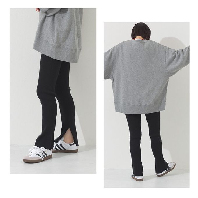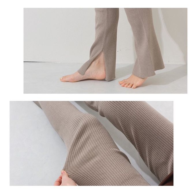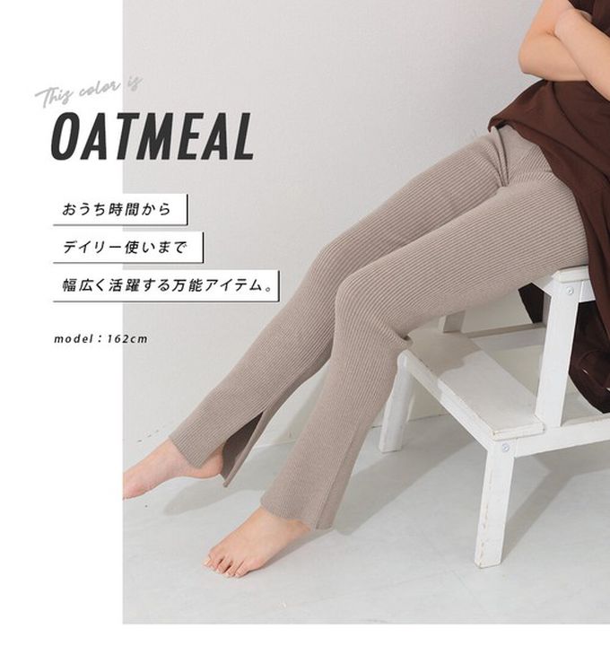 日本 OMNES - 美腿羅紋側開叉合身長褲/打底褲-燕麥棕