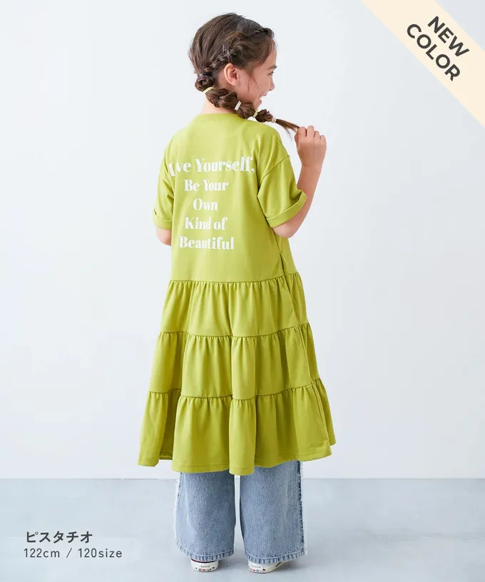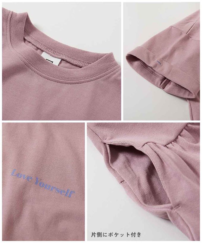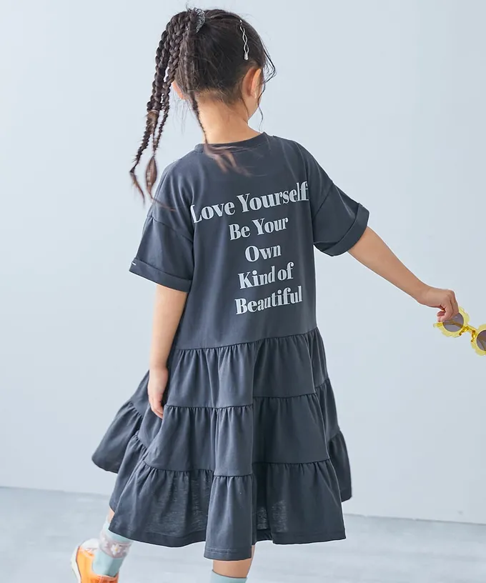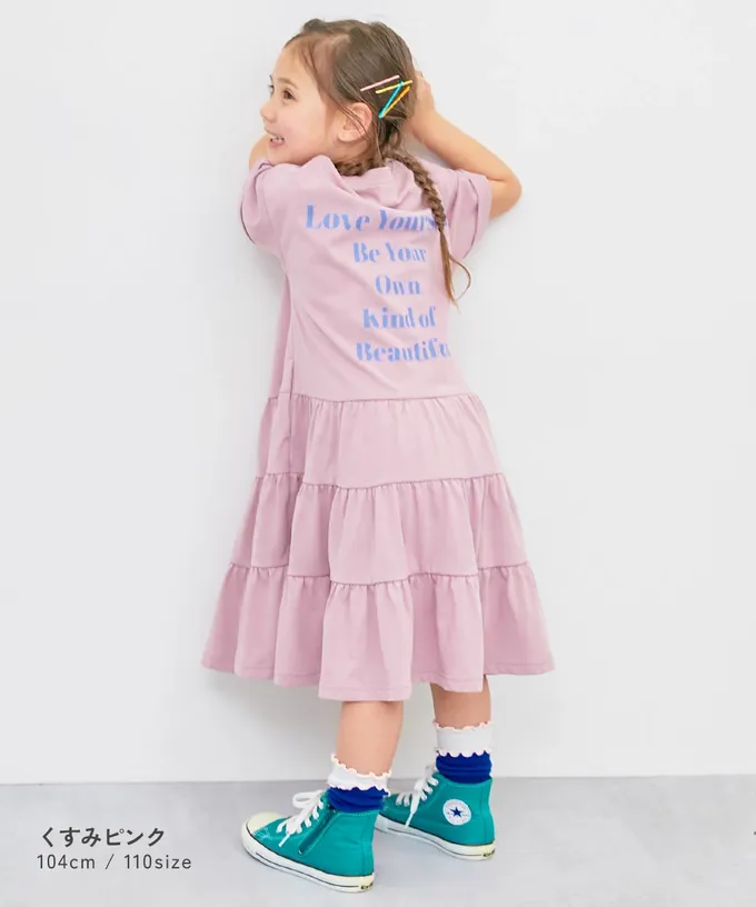 日本 devirock - 天竺棉舒適分層短袖洋裝-背後標語-紫羅蘭