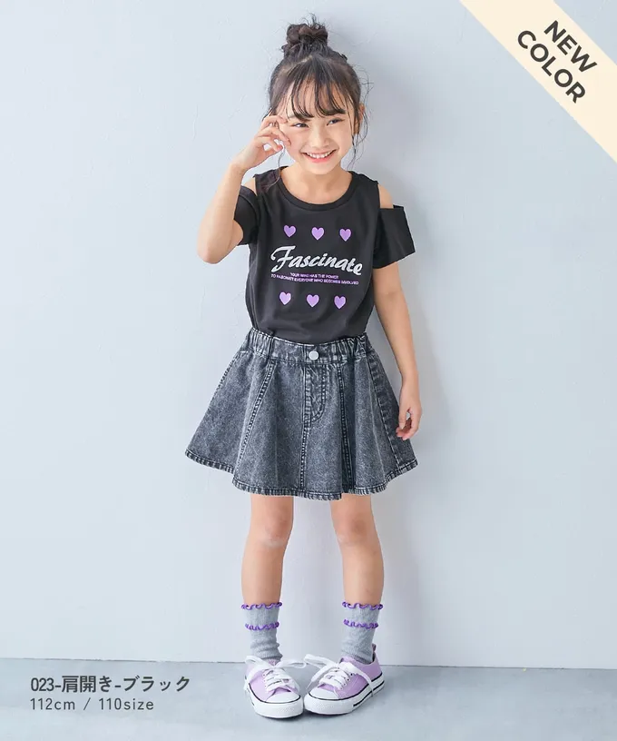 日本 devirock - 女孩運動風設計款短袖T恤-肩開口-黑