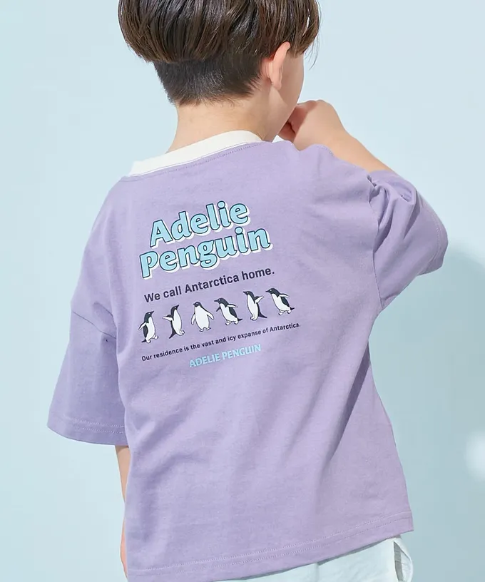 日本 devirock - 100%棉 定番印花短袖上衣-企鵝排列-紫羅蘭