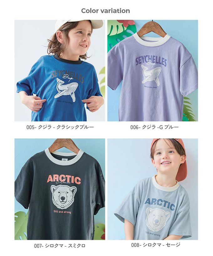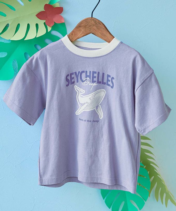 日本 devirock - 純棉動物線條印花短袖上衣-鯨魚-經典藍