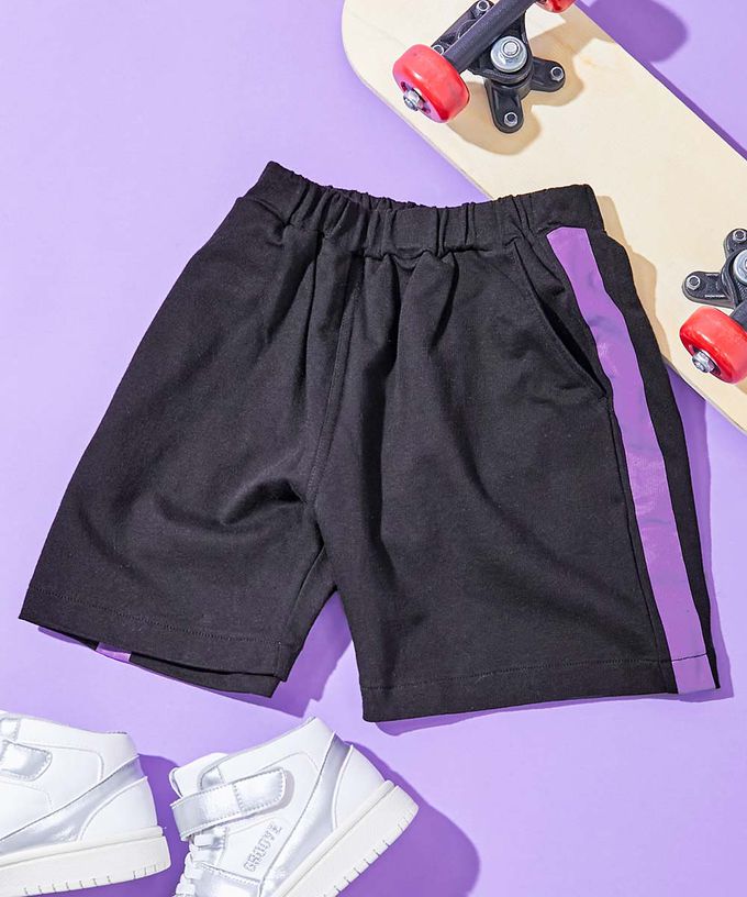 日本 devirock - 夏日印花純棉寬版短褲-BUZZ-黑