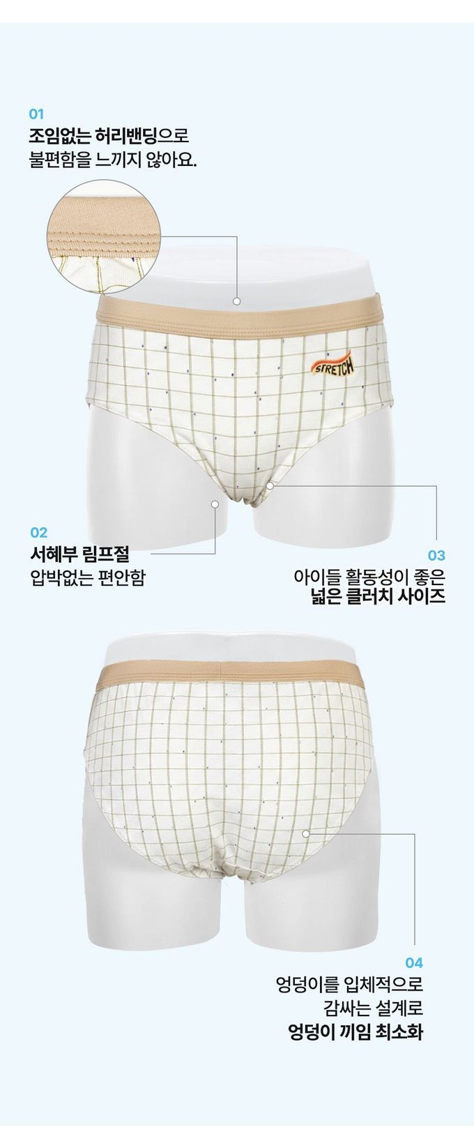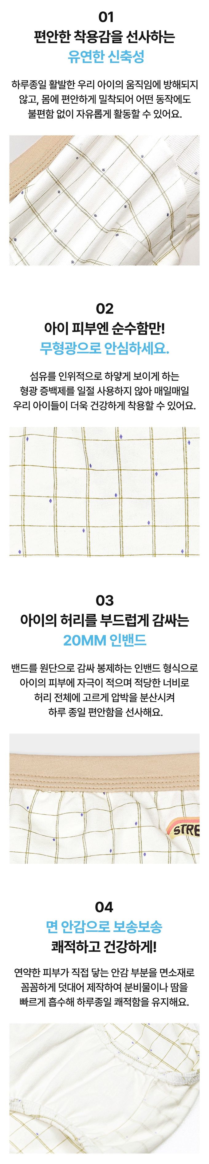 (03.) 腰部20mm採用內藏式鬆緊帶,柔軟包覆孩子腰部。腰帶以面料包覆縫製,柔軟不刺激肌膚,適中寬度可將壓力均勻分散於整個腰部,提供孩子整天舒適自在的穿著感受。