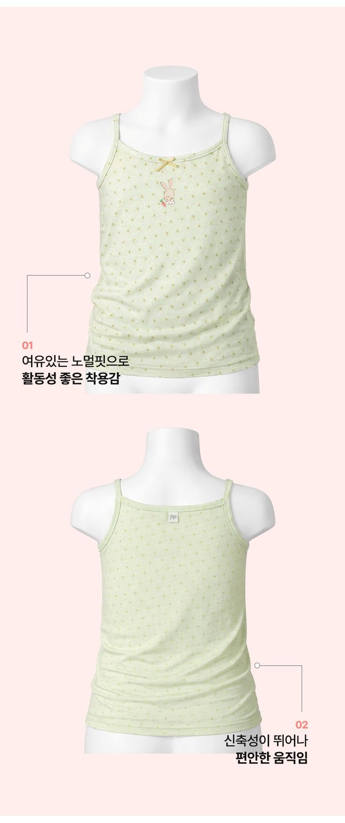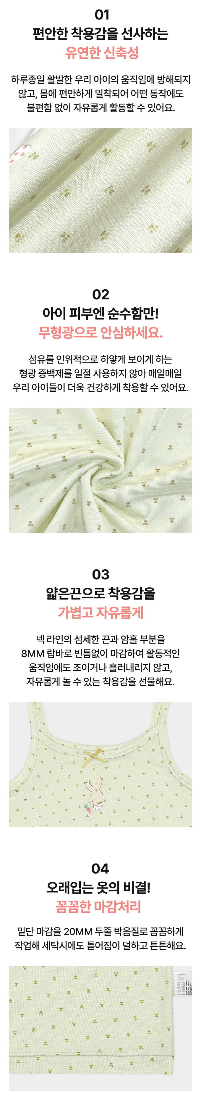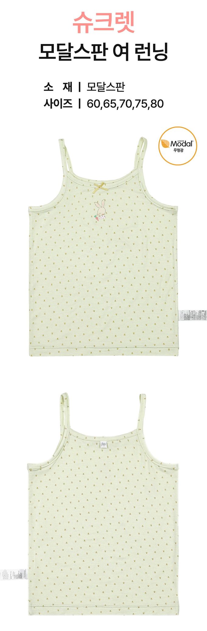 韓國 Ppippilong - 莫代爾親膚絲滑細肩帶內衣(女寶)-手繪兔兔-淺綠