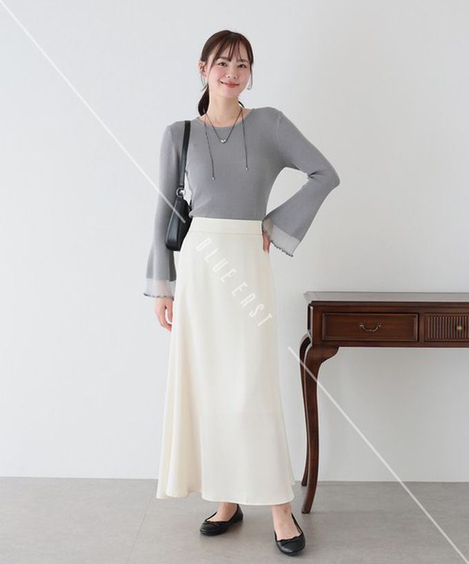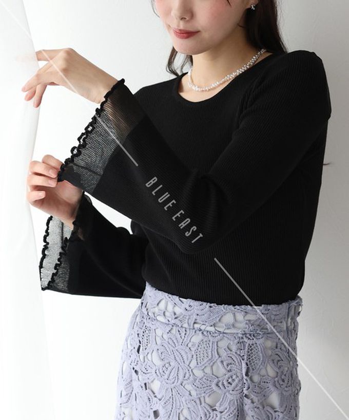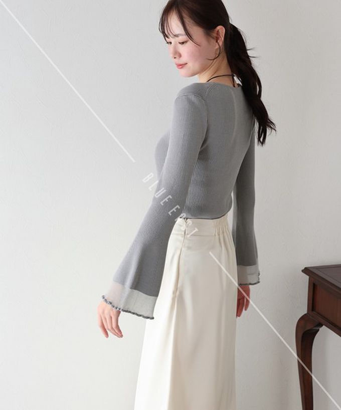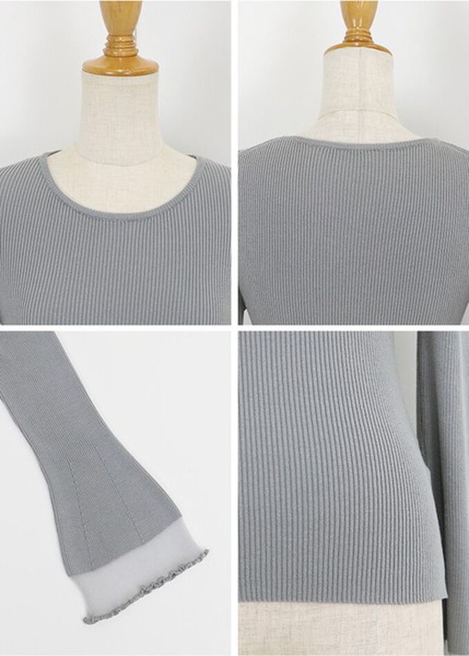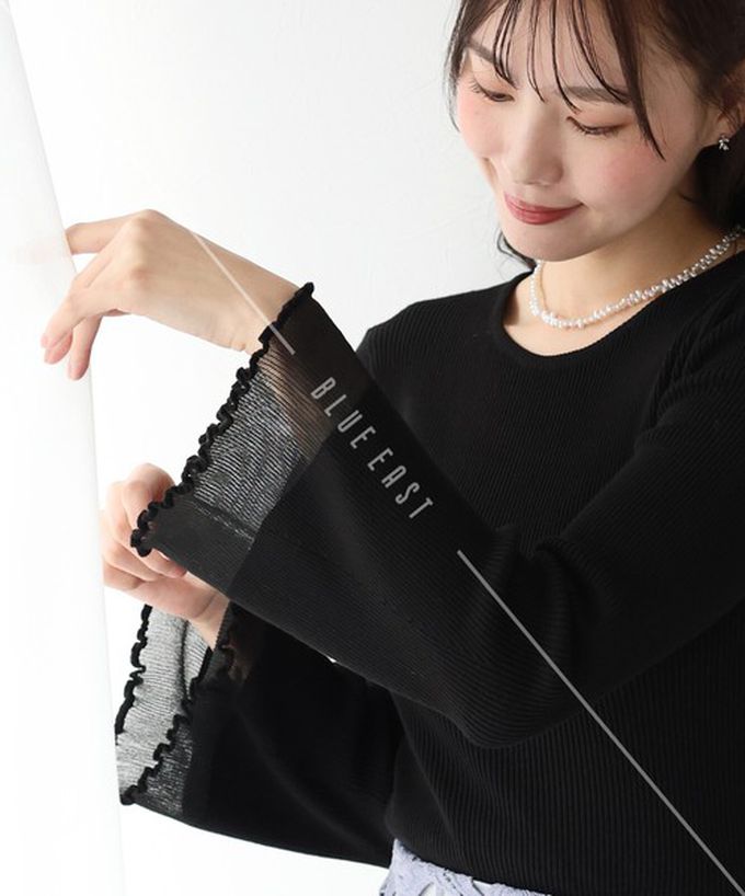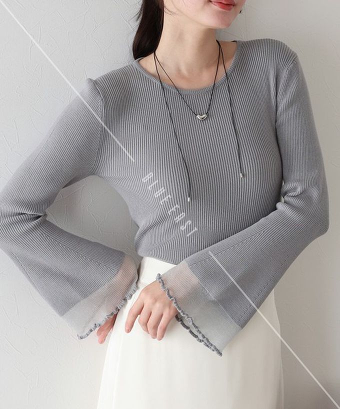 日本 BLUE EAST - 修身羅紋透膚層次喇叭長袖上衣-灰