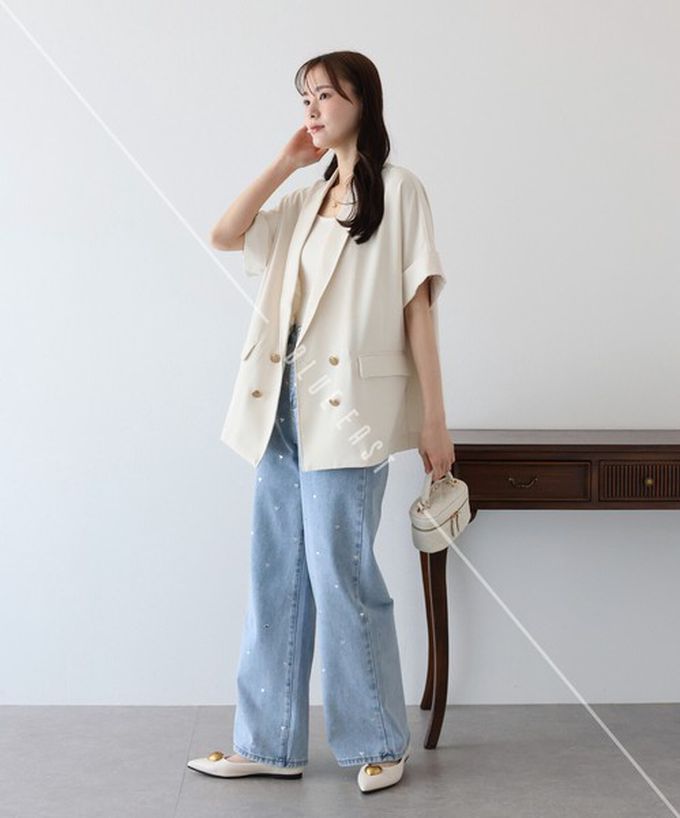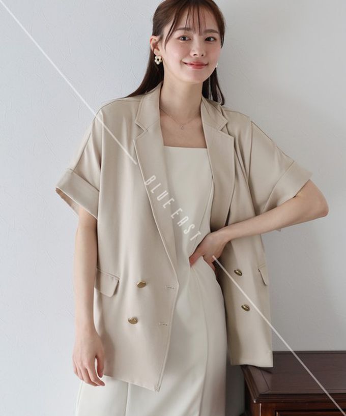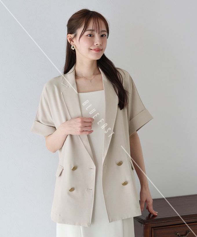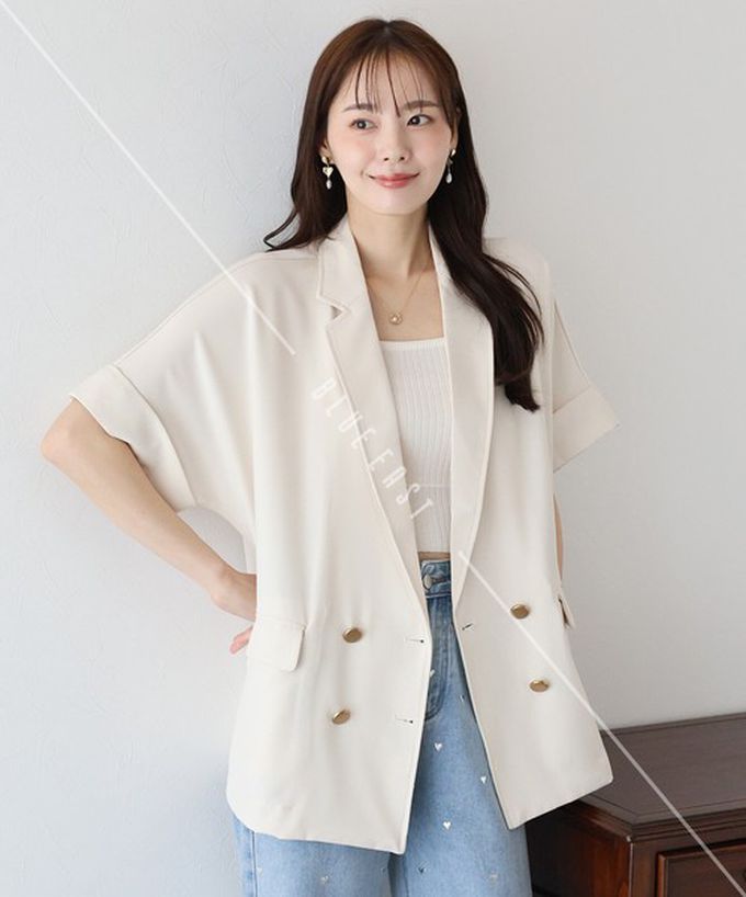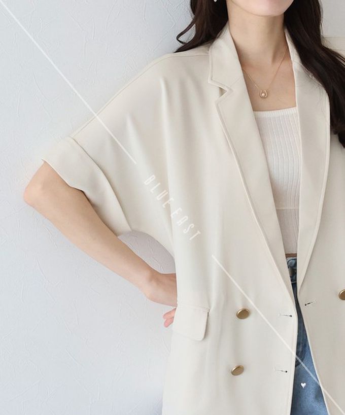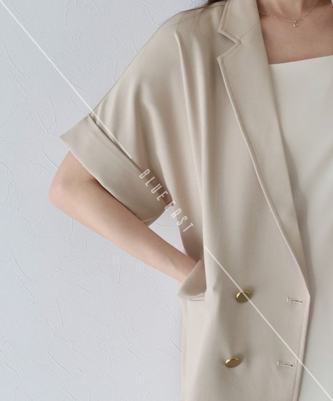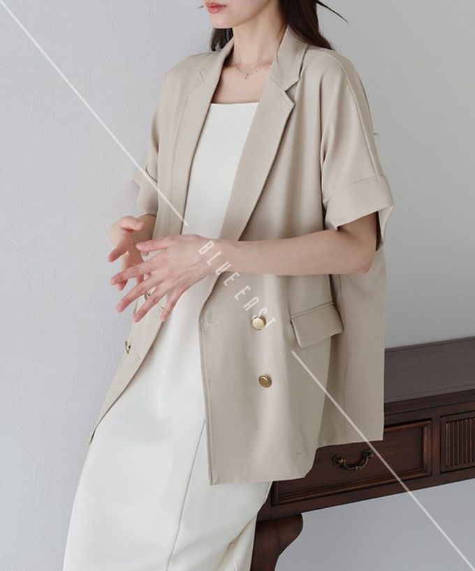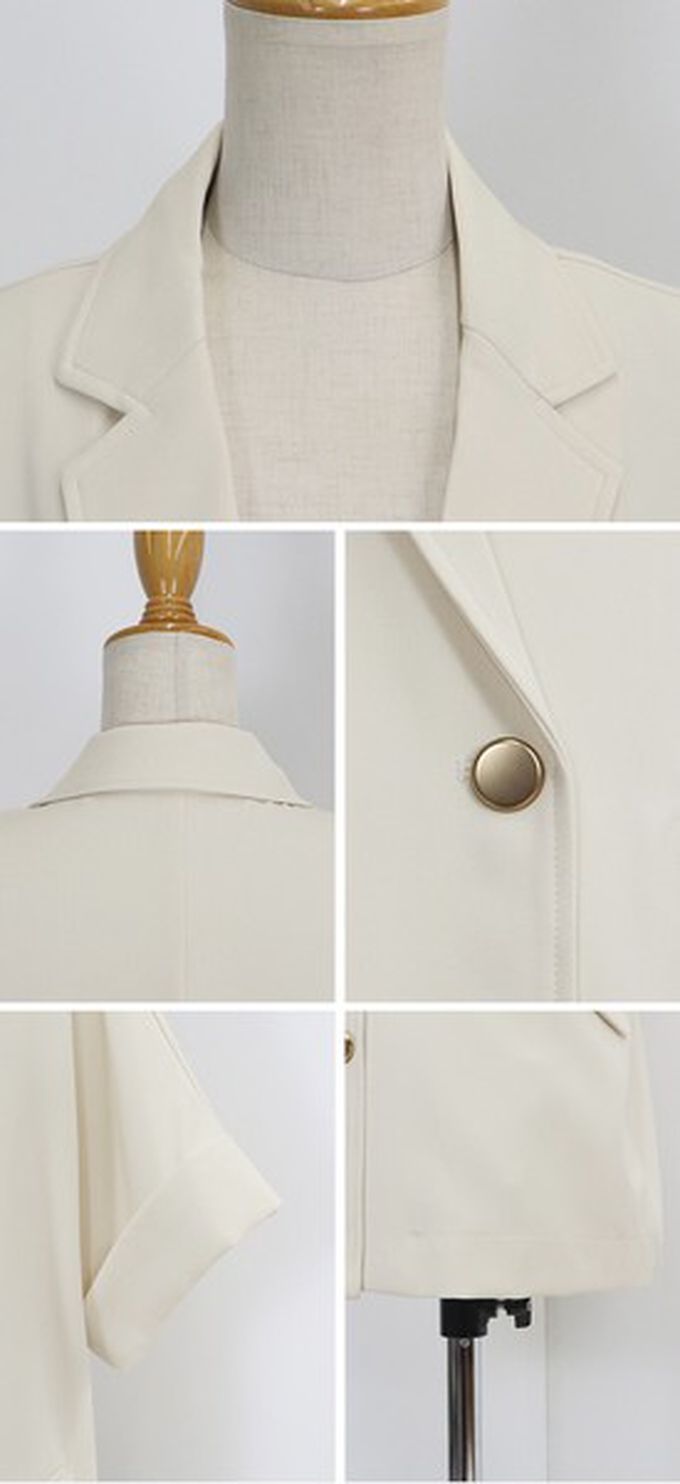 • 品名:亞麻感氣質金釦短袖西裝外套
