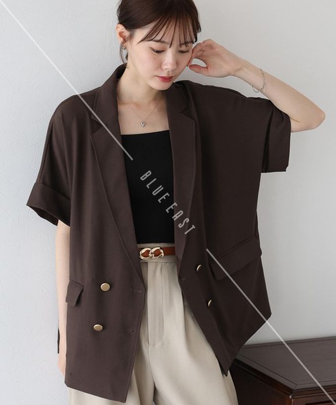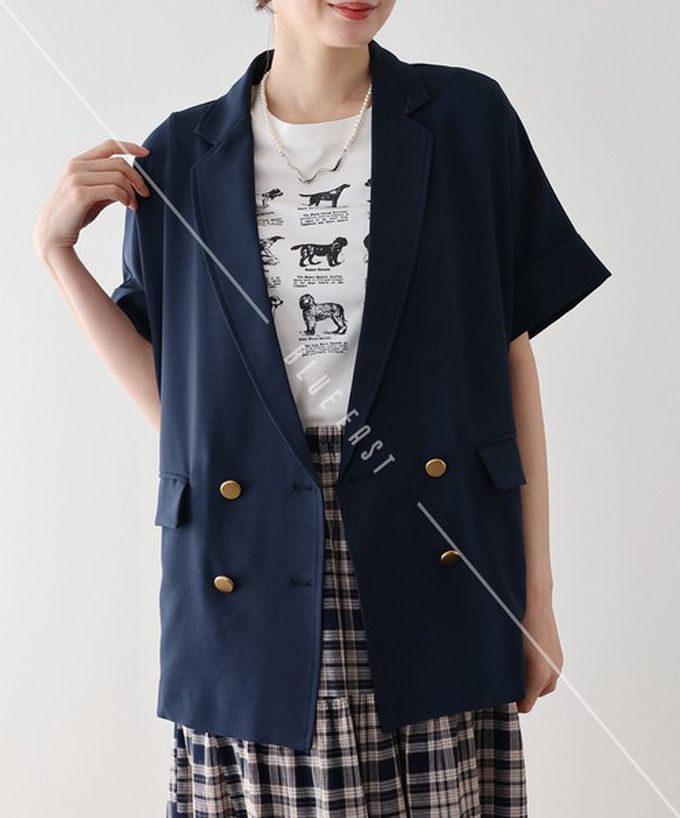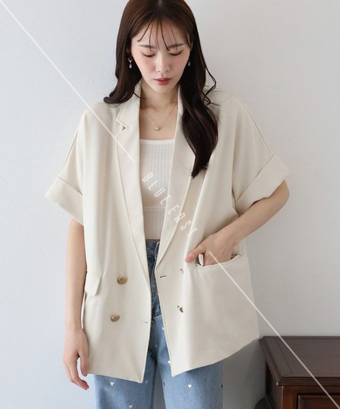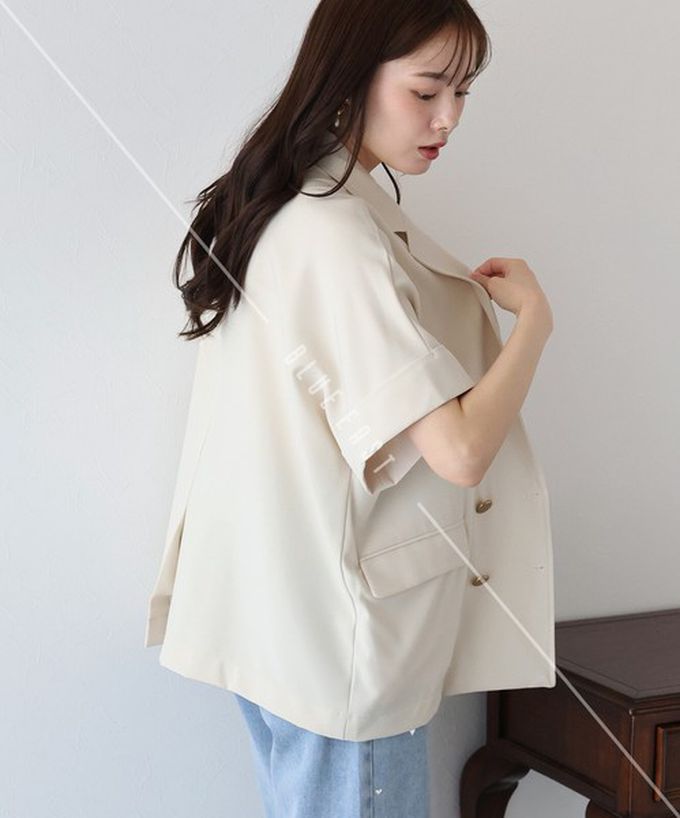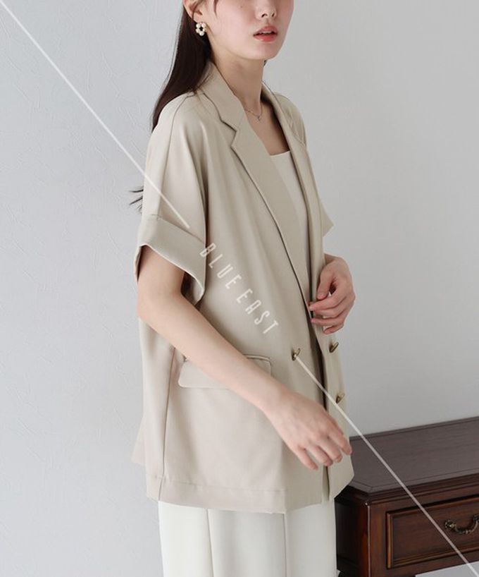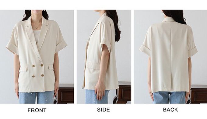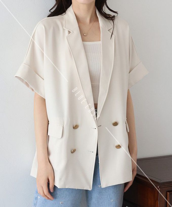 • 品名:亞麻感氣質金釦短袖西裝外套