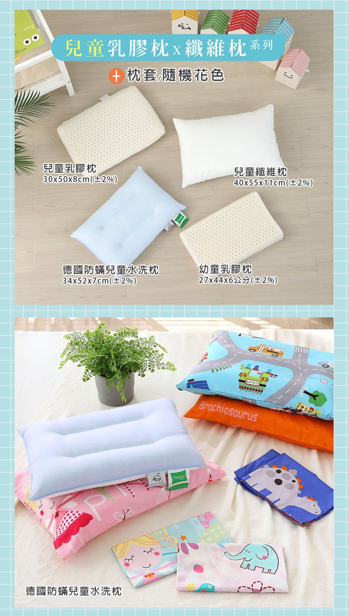 。幼童乳膠枕:27 × 44 × 6 cm
