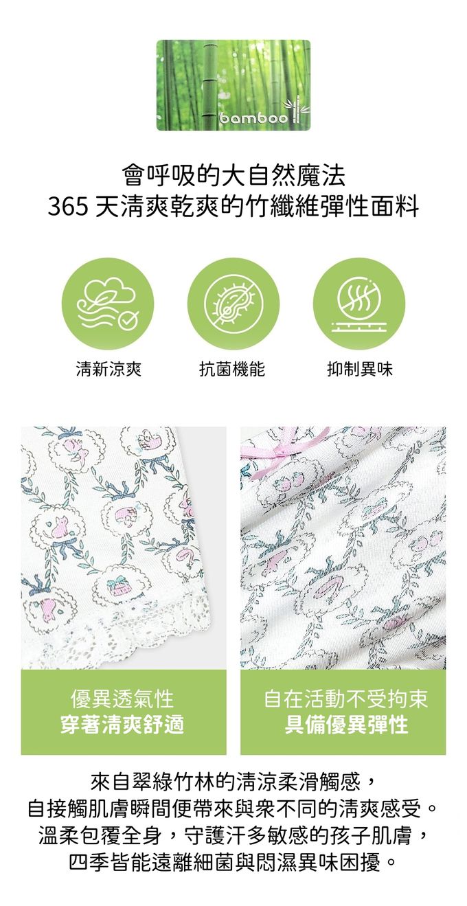 • 品名:竹纖維抗菌除臭透氣四角褲(女寶)