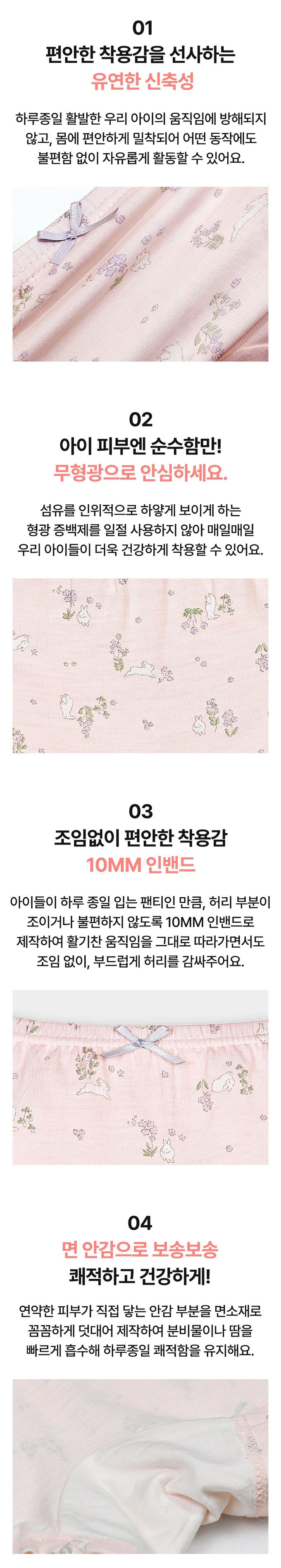 韓國 Ppippilong - 竹纖維抗菌除臭透氣四角褲(女寶)-花園兔兔插畫-粉