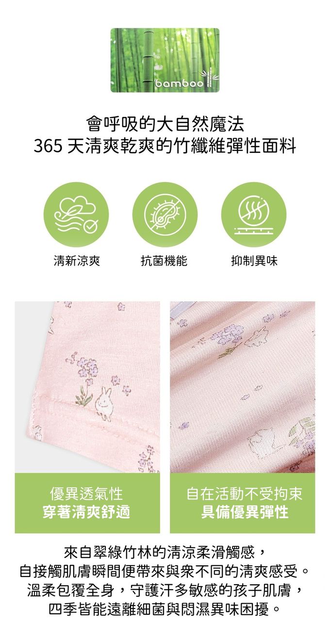 • 品名:竹纖維抗菌除臭透氣四角褲(女寶)