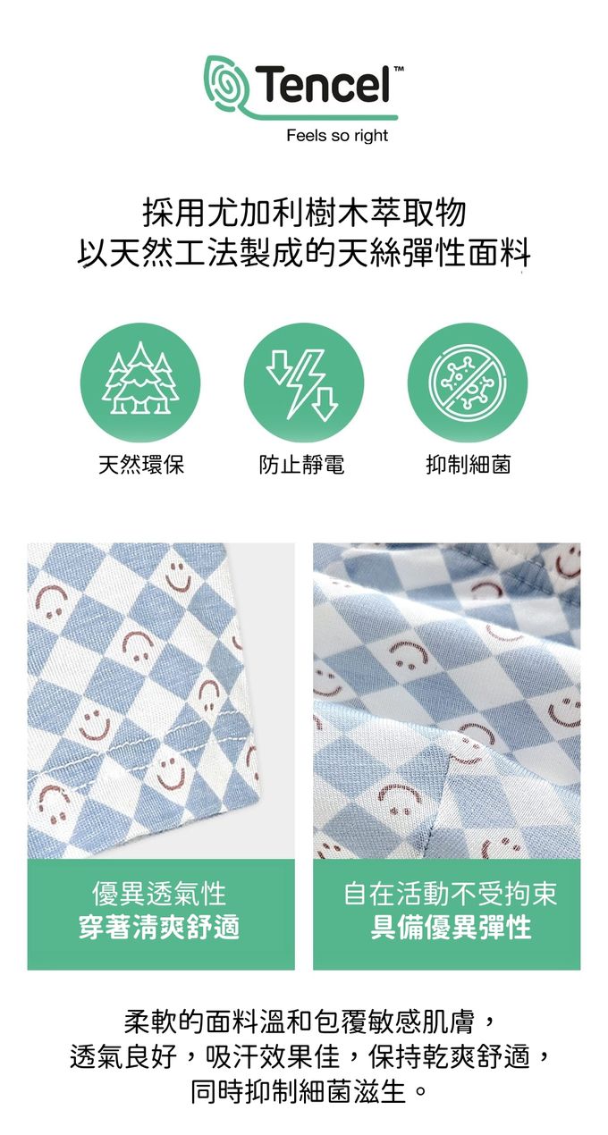 (01.) 柔軟有彈性,穿著舒適,緊貼身形但不緊繃,全天活動也不受限制,孩子可以自由自在地活動。