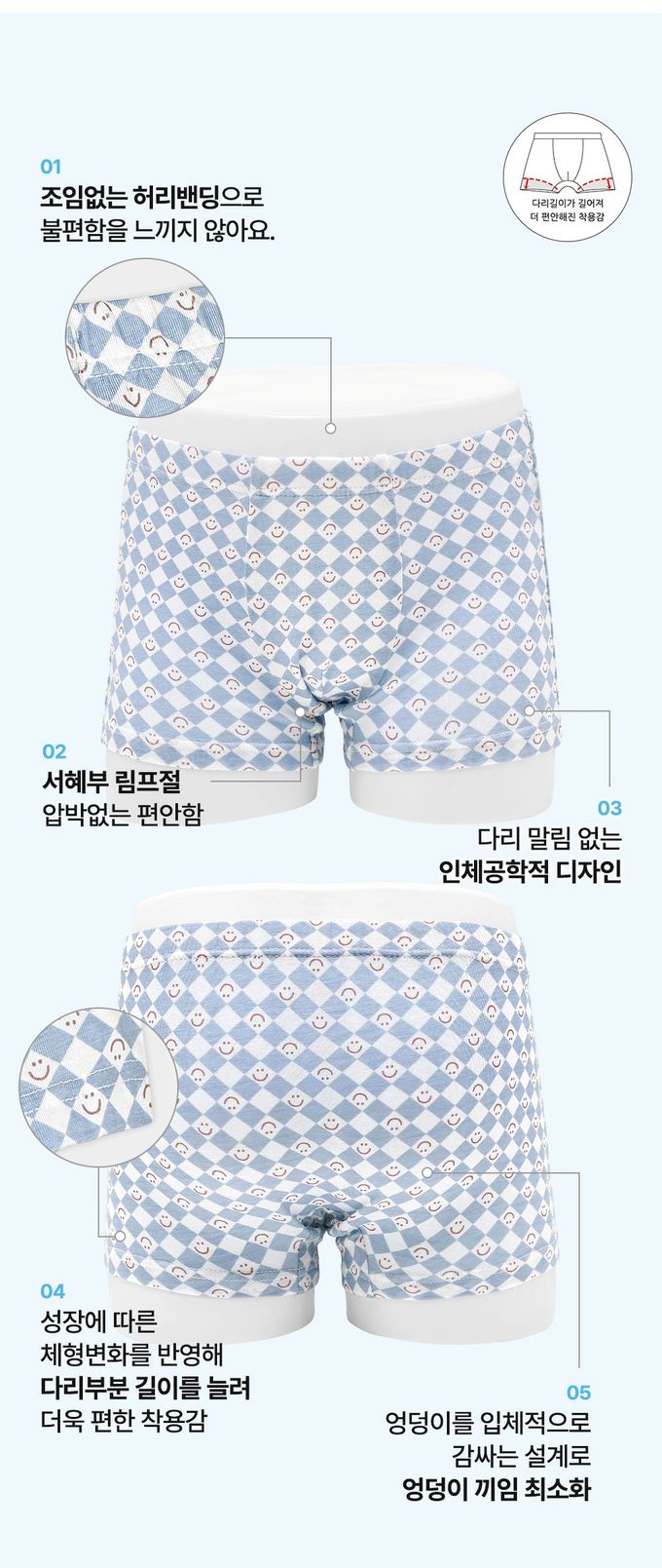 (03.) 柔軟包覆孩子腰部的 20mm 內藏腰帶,腰帶以面料包覆縫製,對肌膚刺激低,寬度適中,可將壓力均勻分散於整個腰部,讓孩子整天穿著都舒適自在。