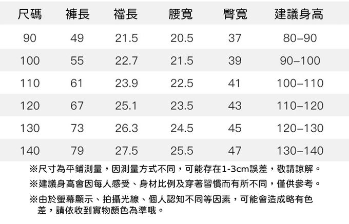 90cm、100cm、110cm、120cm、130cm、140cm