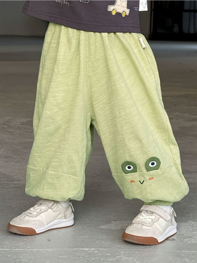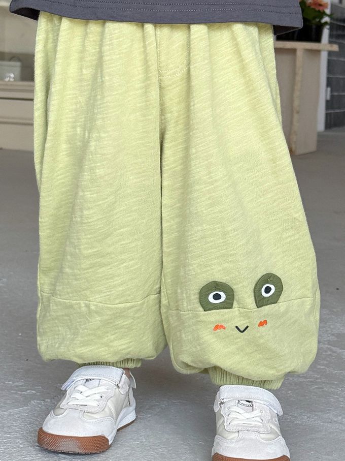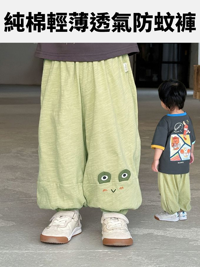 純棉輕薄透氣防蚊褲-可愛動物-黃綠