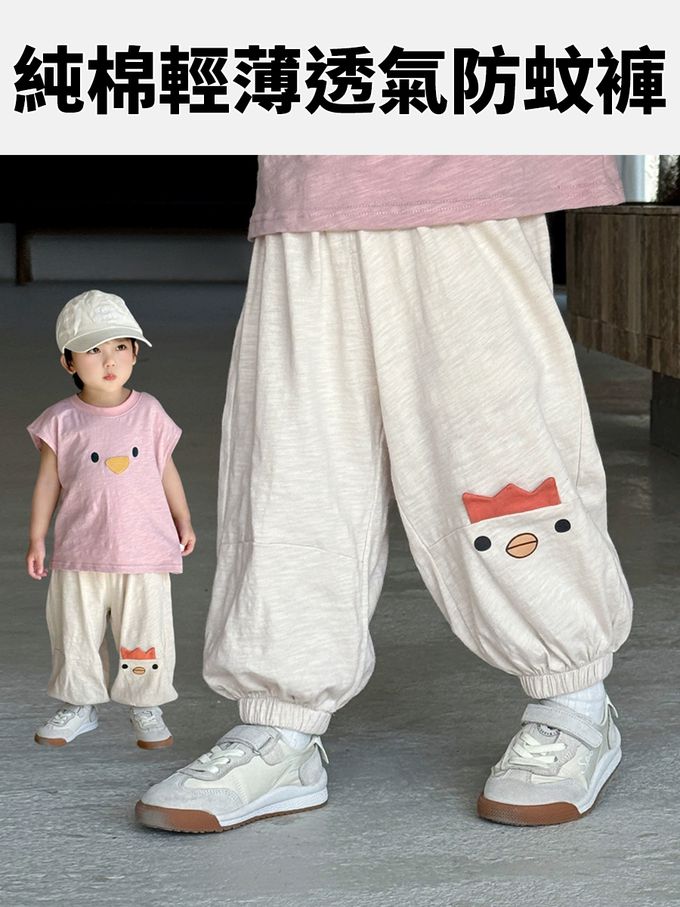 純棉輕薄透氣防蚊褲-可愛動物-淺米