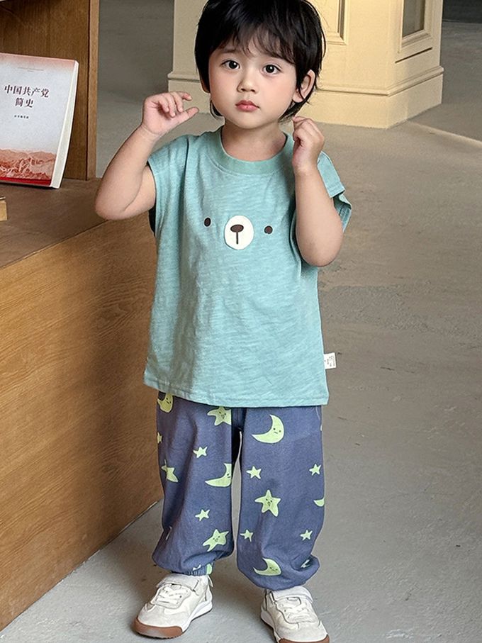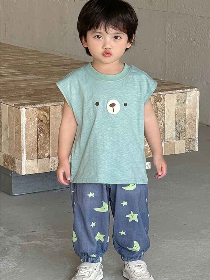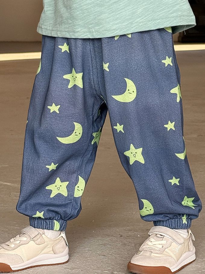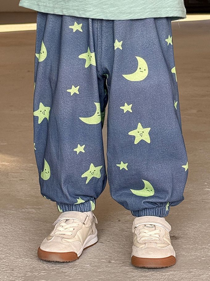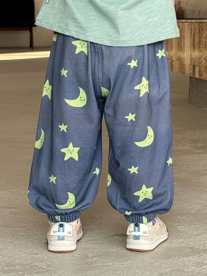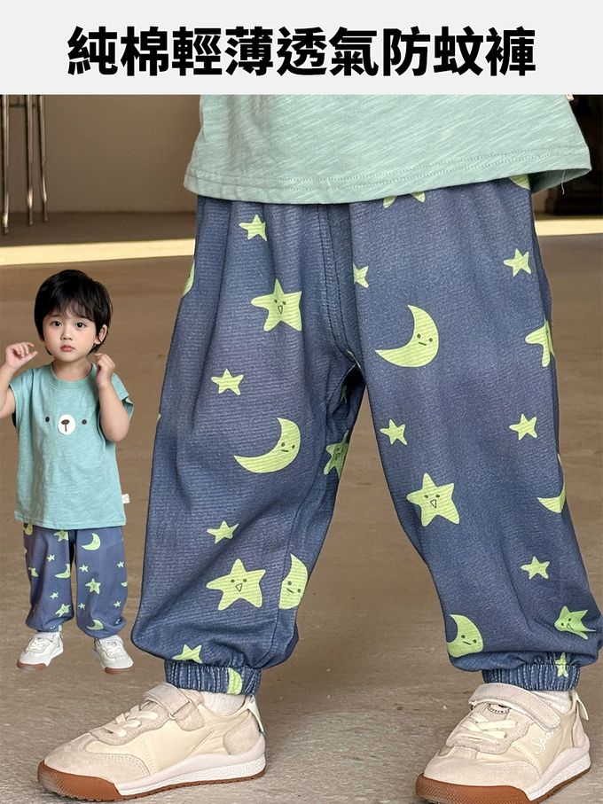 純棉輕薄透氣防蚊褲-星星月亮-藍色