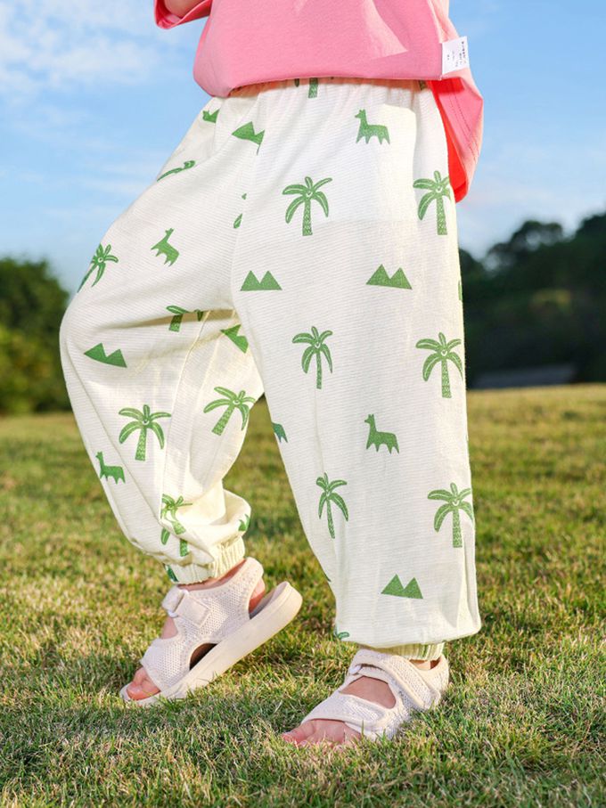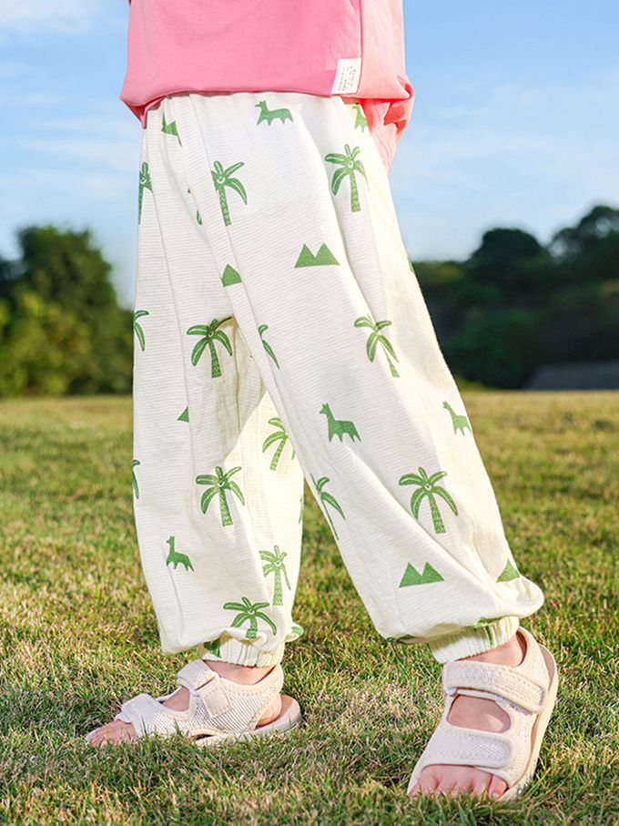 純棉輕薄透氣防蚊褲-島嶼風情-米白