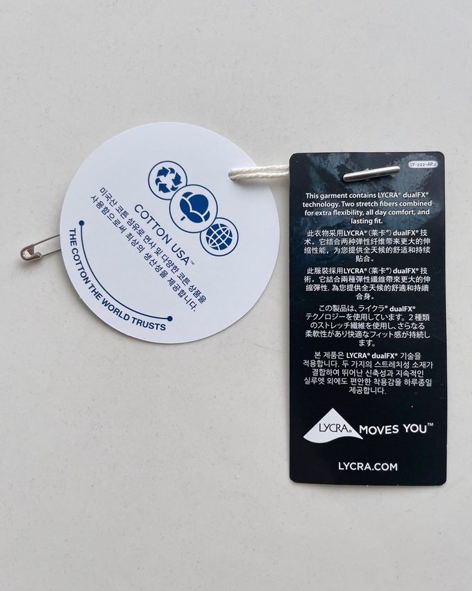 採用 LYCRA® dualFX® 技術,結合兩種彈性纖維,提供更優異的伸縮性能,帶來全天候的舒適感與持久貼合效果。