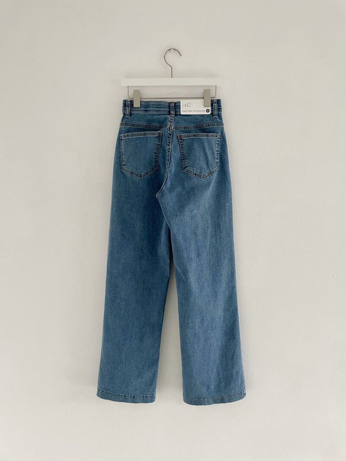 韓國女裝連線 - Howluk (涼感機能)彈性腰小口袋丹寧直筒褲-中青