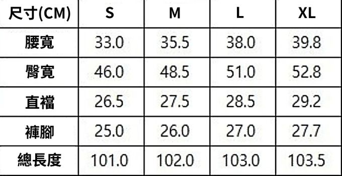 1. 尺寸表單位皆為公分(cm),實際尺寸會因布料彈性、水洗、測量起迄點等因素略有誤差。