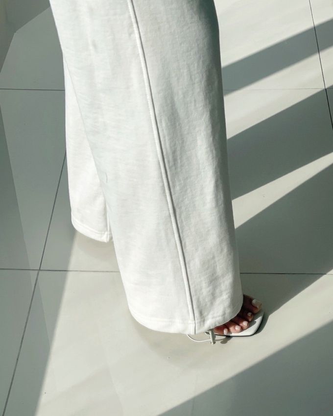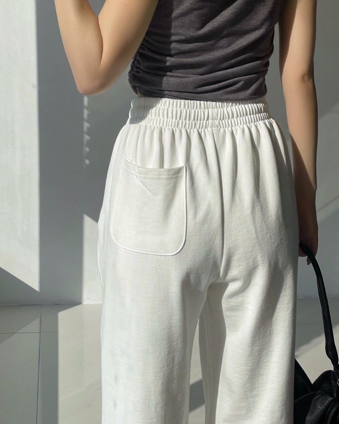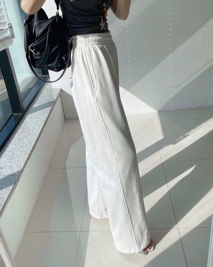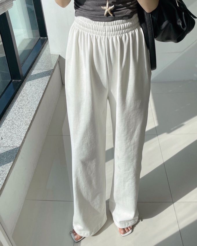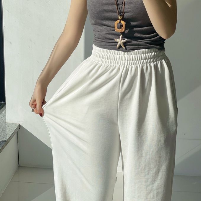韓國女裝連線 - Howluk 鬆緊腰休閒風格縮口/寬褲-象牙白 (FREE)