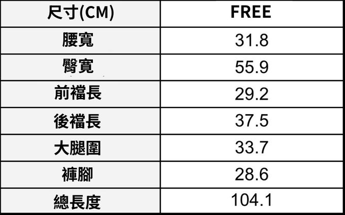 1. 尺寸表單位皆為公分(cm),實際尺寸會因布料彈性、水洗、測量起迄點等因素略有誤差。