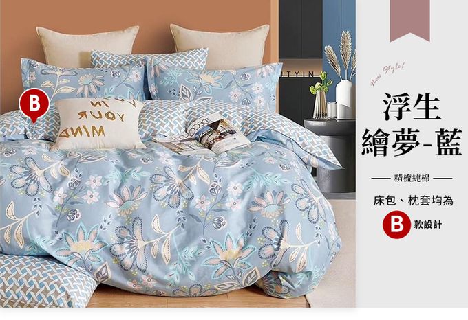 台灣製 極致純棉寢具組-浮生繪夢-藍 (B版)-雙人三件式床包組