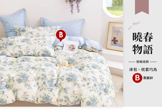 台灣製 極致純棉寢具-曉春物語 (B版)-雙人三件式床包組