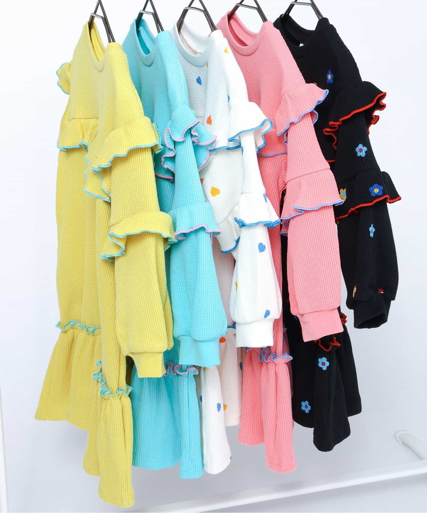• 品名:甜美荷葉分層華夫格長袖洋裝