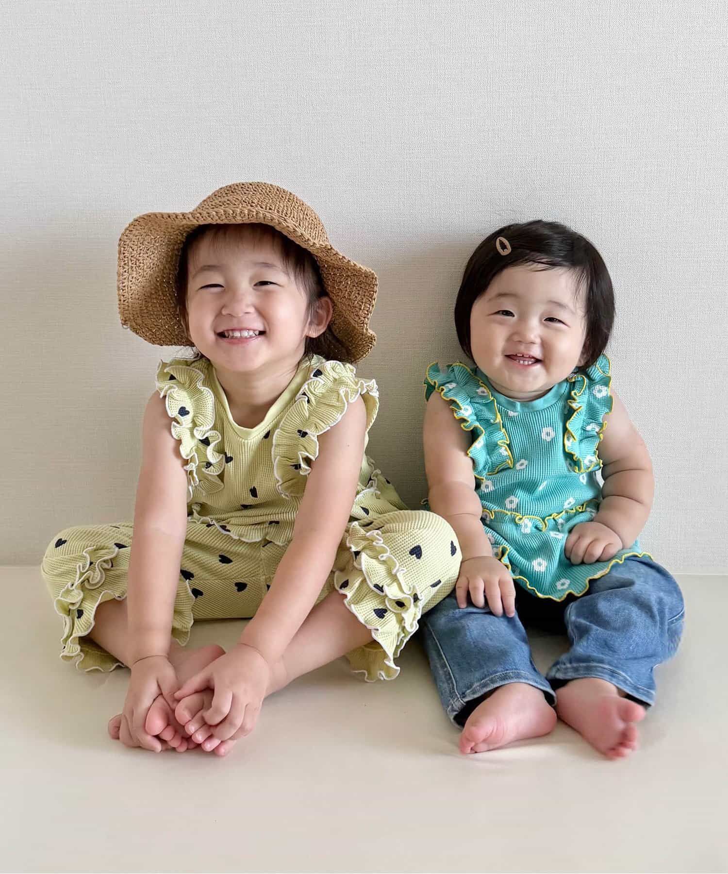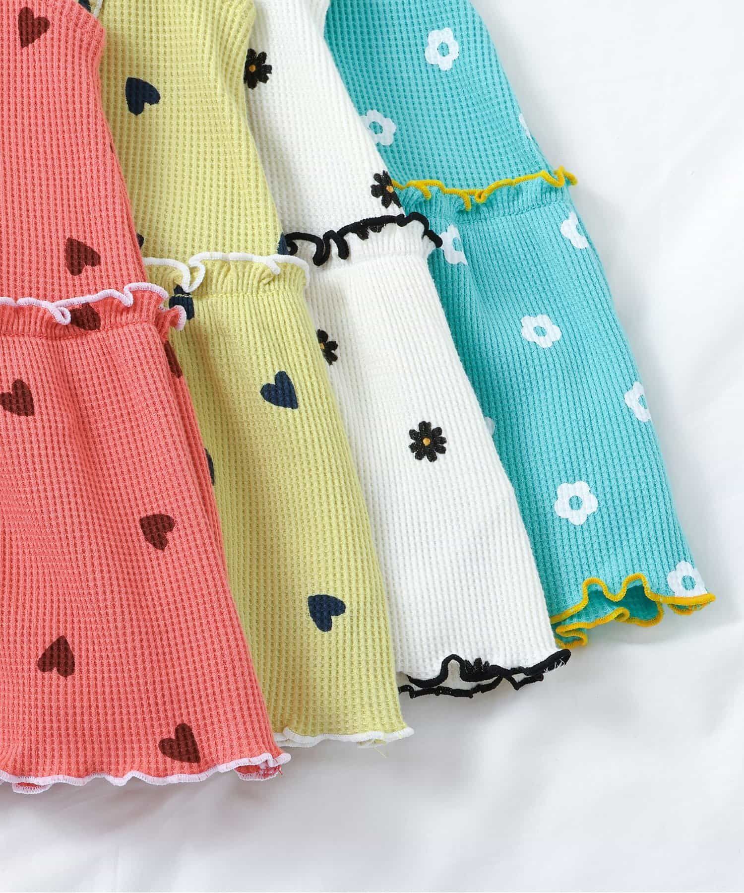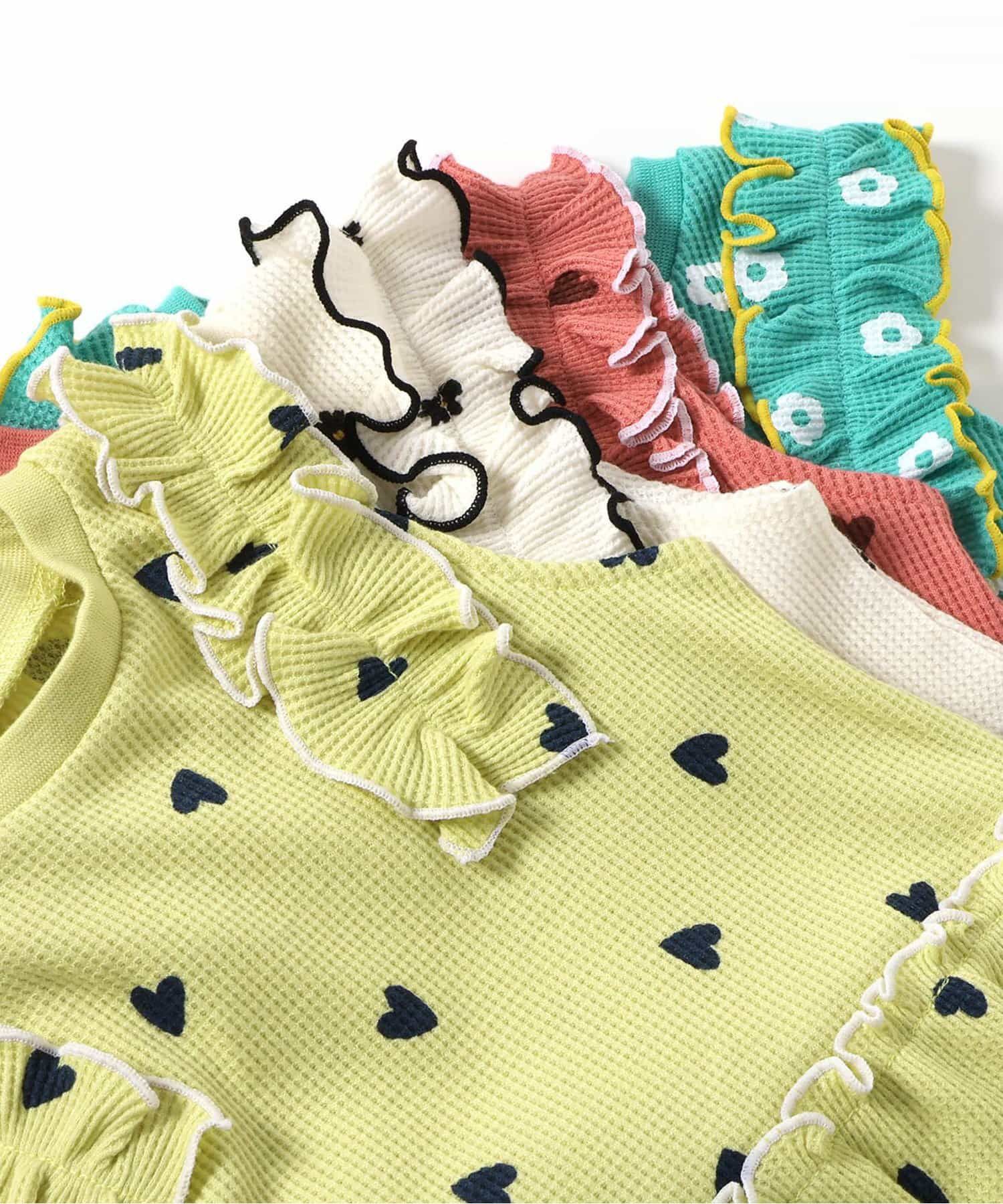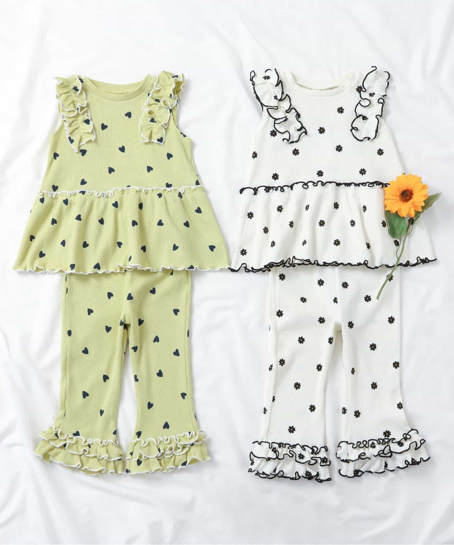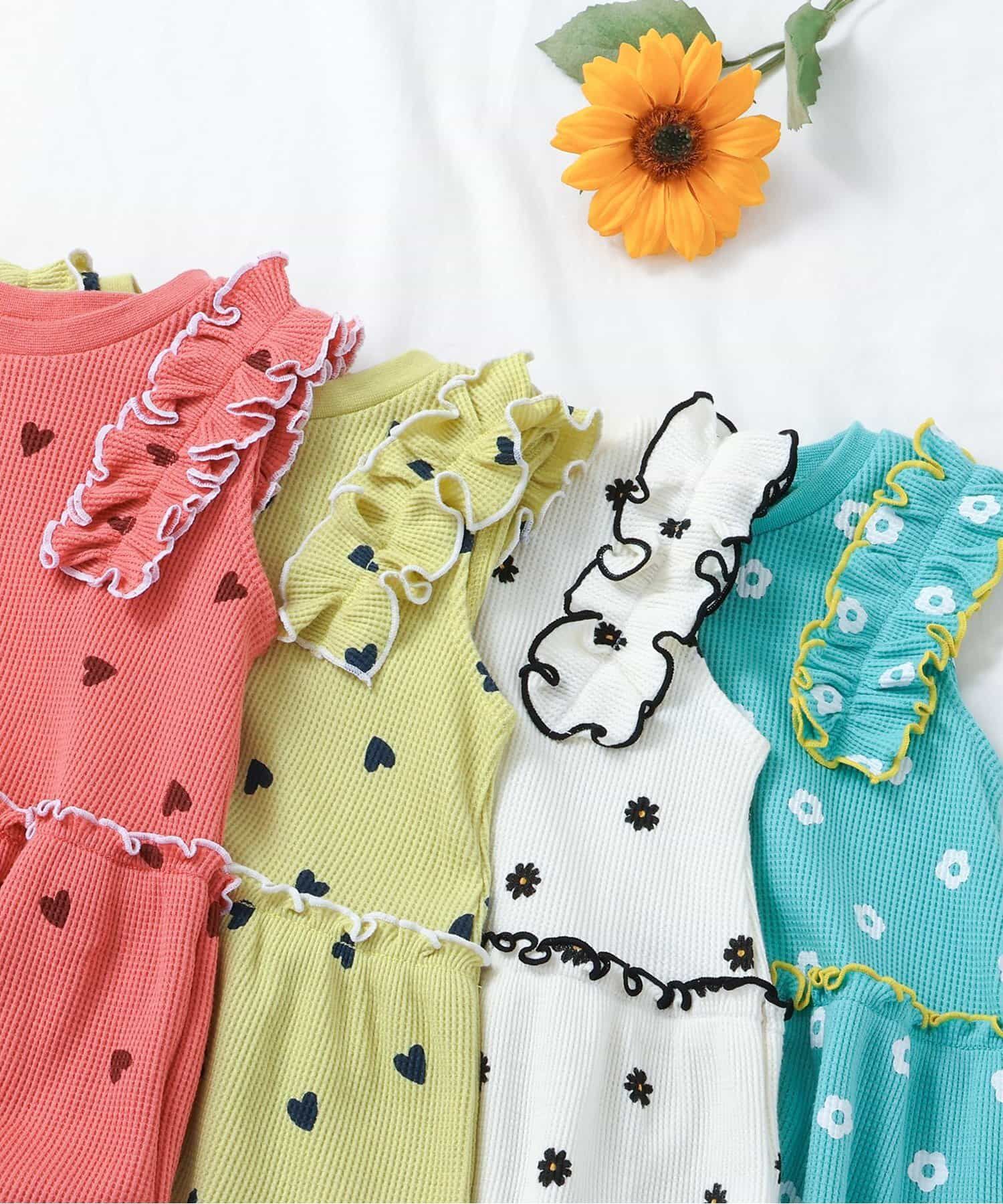 日本 apres les cours - 肩荷葉邊華夫格印花無袖上衣-花朵-象牙白
