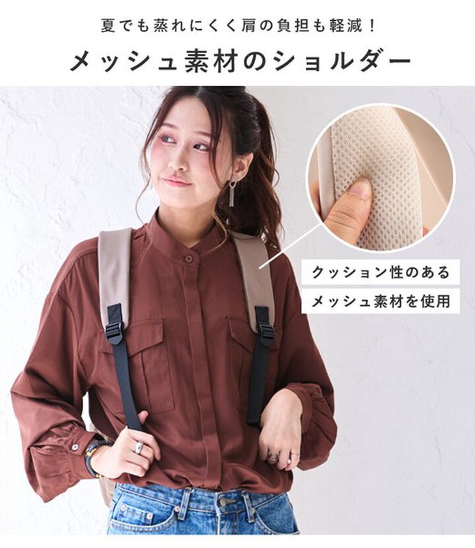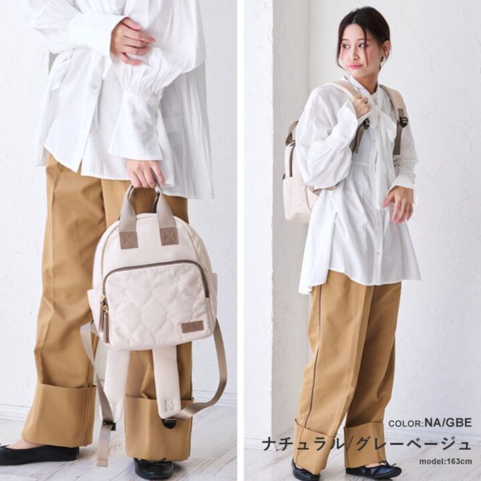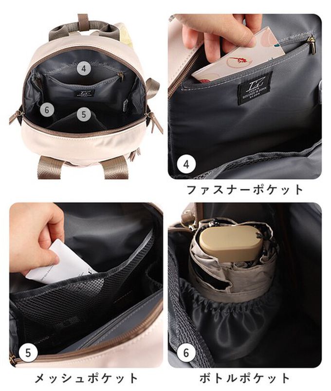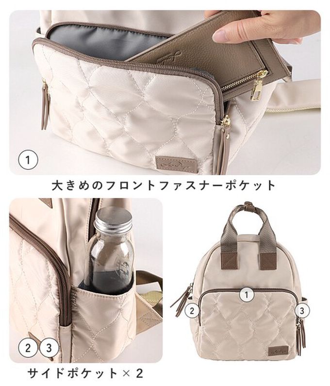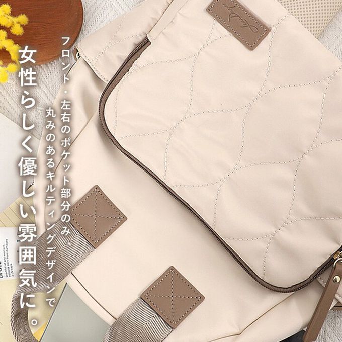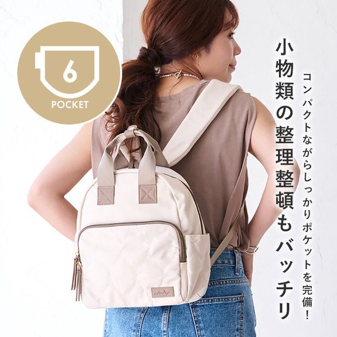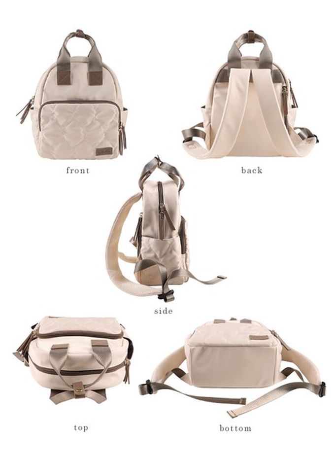 日本 LIZDAYS - 6口袋輕量絎縫時尚小巧後背包-米x杏