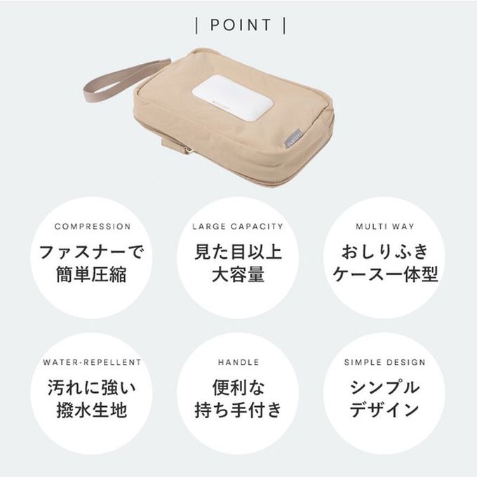 日本 LIZDAYS - 媽咪救星!大容量尿布濕紙巾壓縮收納袋-炭灰