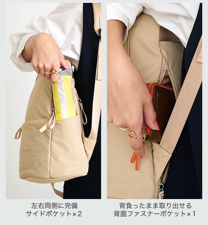 日本 LIZDAYS - 多格層帆布2way肩背/手提包-淺灰 (29x24x14cm)