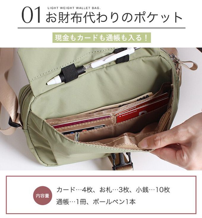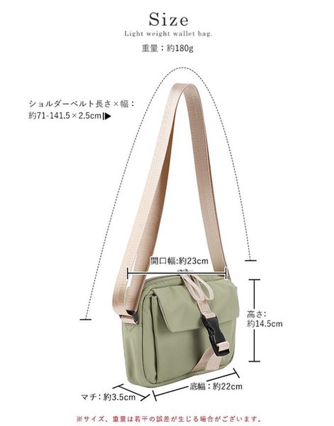 日本 LIZDAYS - 旅行系列 輕量防潑水皮夾功能側背包-煙燻綠