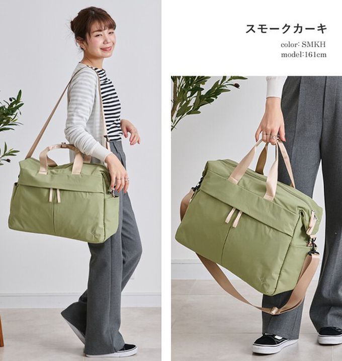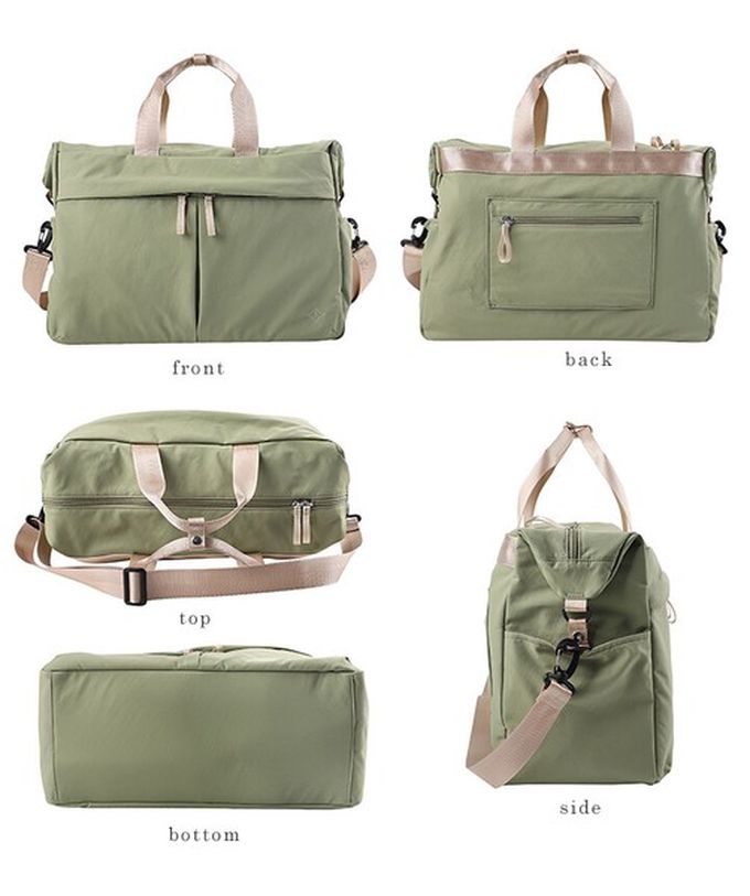 日本 LIZDAYS - 旅行系列 輕量防潑水3way多口袋波士頓包-煙燻綠