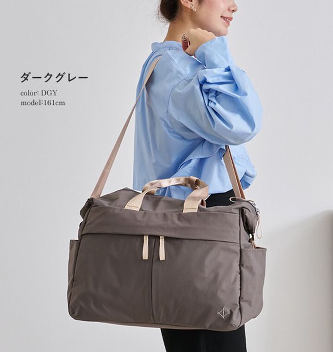 日本 LIZDAYS - 多格層帆布2way肩背/手提包-淺灰 (29x24x14cm)