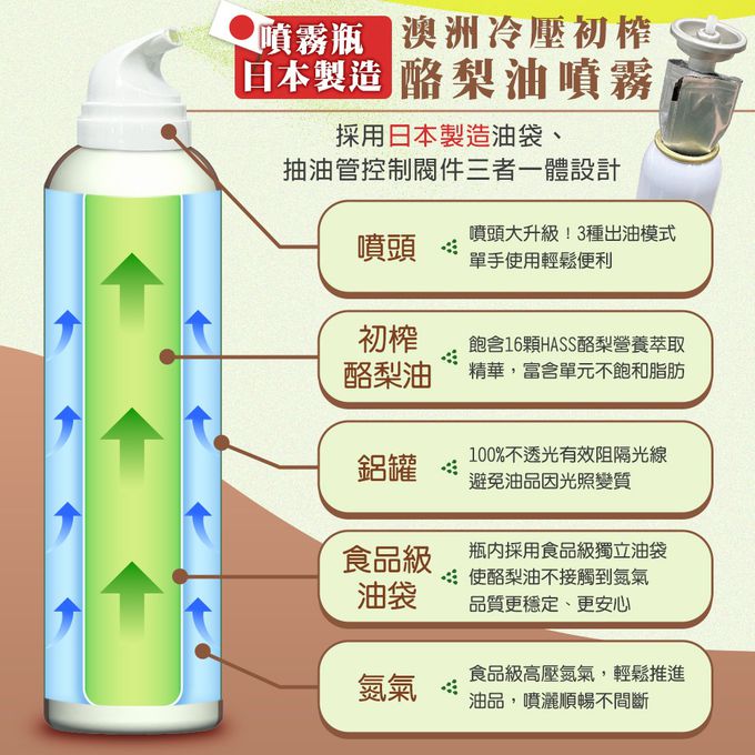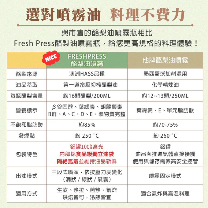 品名:FreshPress澳洲頂級冷壓初榨酪梨油噴霧/噴油瓶