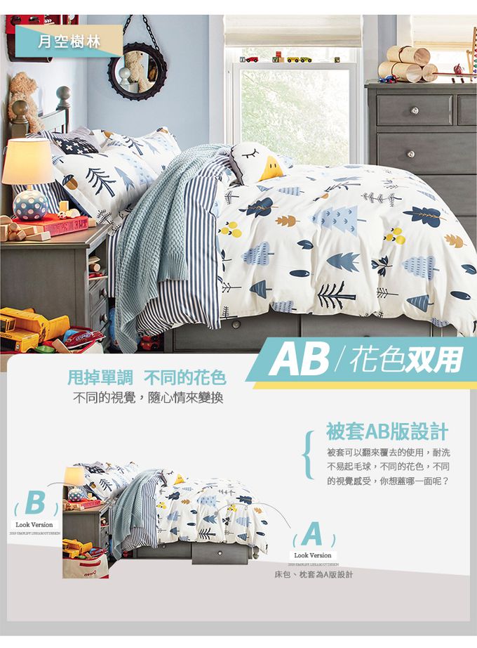 台灣製 極致純棉寢具組-月空樹林-雙人三件式床包組