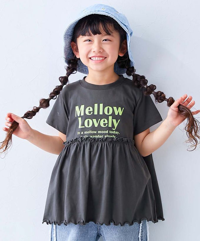日本 devirock - 傘擺皺摺休閒logo短袖上衣-炭黑
